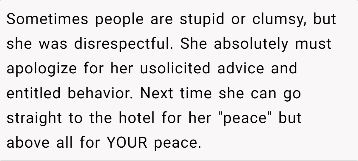 The OP’s reaction, though emotional, was a defense of her right to choose what’s best for her child without external interference. This episode serves as a reminder that while feedback can sometimes be helpful, it should always be offered respectfully and with an understanding of the complexities inherent in parenting.