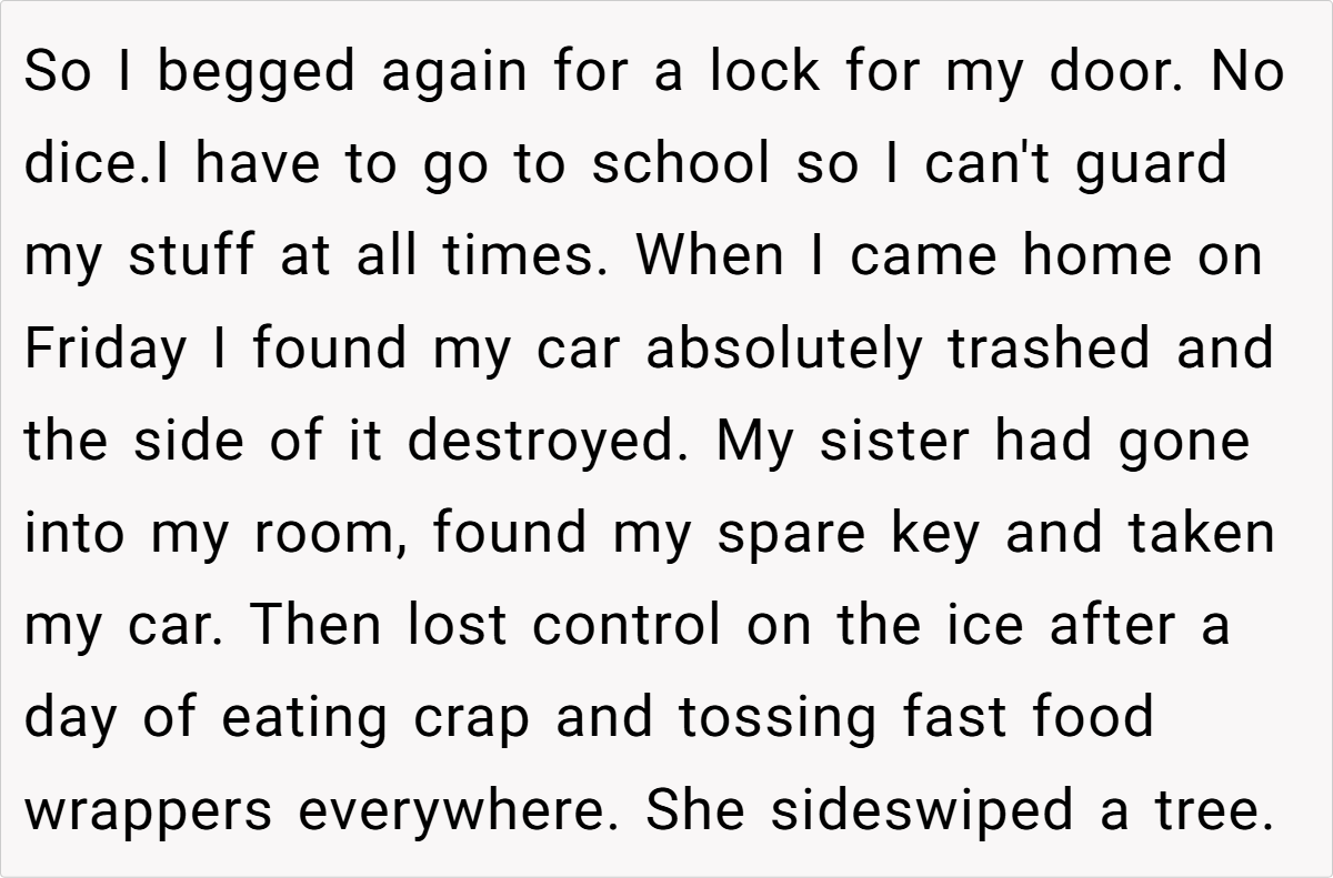 Family conflicts can sometimes force us into impossible choices—balancing personal responsibility with loyalty, fairness with tough love. In this case, a 17-year-old feels compelled to hold her parents accountable when her older sister’s reckless behavior not only wrecks her car but also threatens to derail a long-awaited family vacation. The tension between protecting personal property and preserving family unity sets the stage for a challenging, no-win situation.