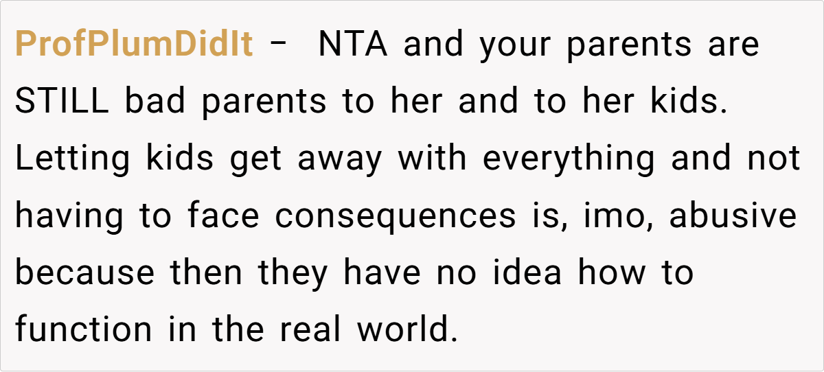 Family therapist Dr. Brené Brown reminds us, “Daring to set boundaries is about having the courage to love ourselves even when we risk disappointing others.” This insight speaks directly to the OP’s predicament. By insisting on accountability, she isn’t acting out of pettiness but rather attempting to establish limits that might ultimately benefit everyone. While the repercussions are harsh, the need for clear boundaries is a cornerstone of healthy relationships.