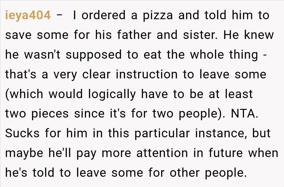 ‘ AITA For making my son pay for a new pizza when he didn’t save any for the rest of the family?’