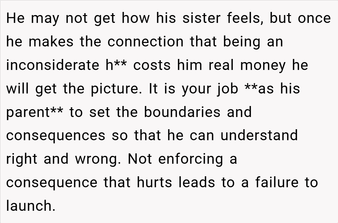 Several redditors expressed strong support for the mother’s decision. One user commented, “After years of reminders and little change, you’re not being petty by making him face the consequences. Sometimes, tough love is necessary to teach responsibility.”