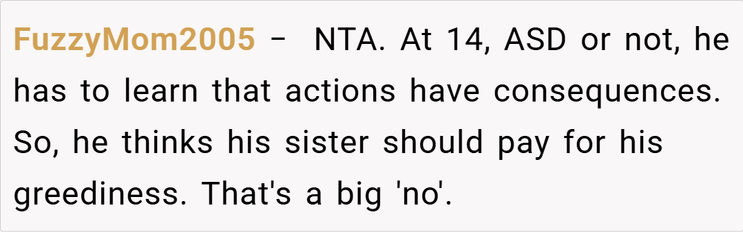 Similarly, relationship expert Dr. John Gottman states, “While using financial consequences can be a harsh method of discipline, it sometimes becomes necessary when repeated behaviors affect the well-being of other family members. In this case, the mother’s decision reflects her attempt to balance fairness with teaching responsibility—ensuring that everyone contributes appropriately to shared resources.”