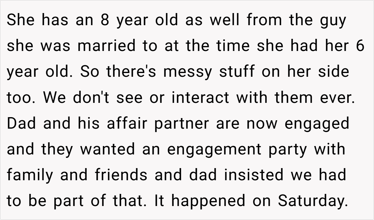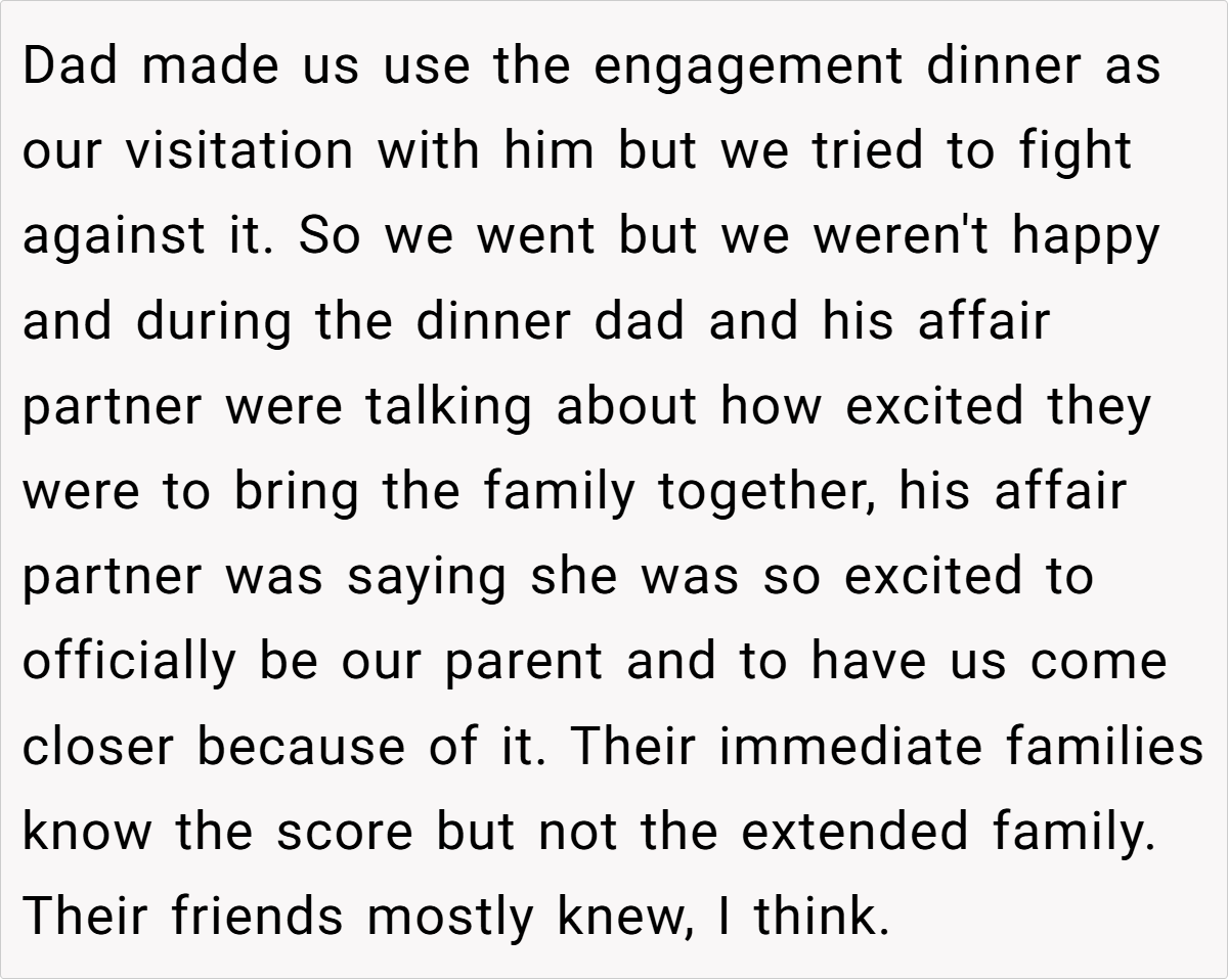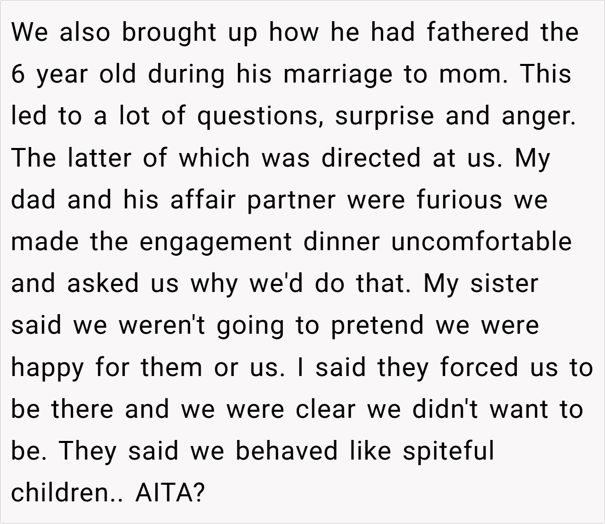 ‘AITA for making things uncomfortable during my dad’s engagement dinner?’
