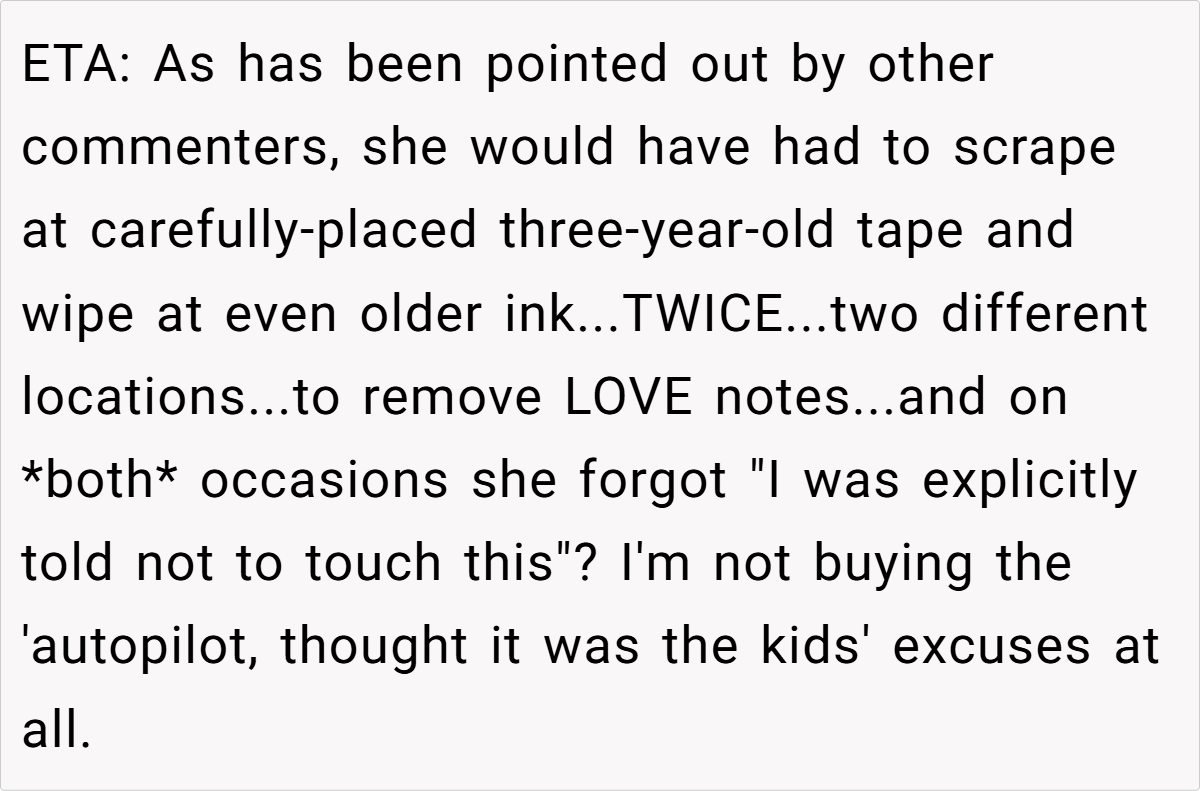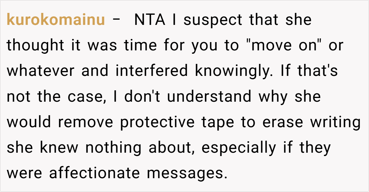 Others point out that while the babysitter might have seen the notes as mere clutter or remnants of a bygone era, the significance they held for the author cannot be underestimated. Some commenters even suggest that if the babysitter is unable to respect such boundaries, it may be best to reconsider her role in the household—even if the action was unintentional.