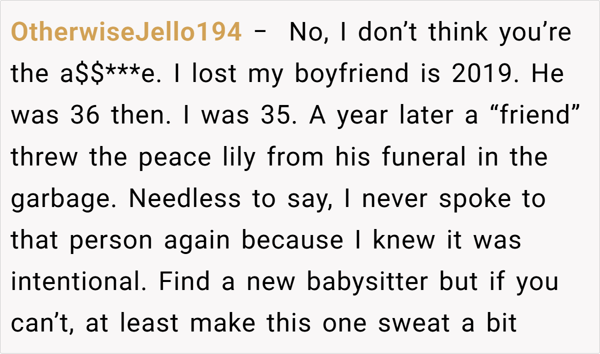it isn’t merely about the object—it’s about the meaning behind it and the emotional security it provides.” In this case, while the babysitter’s actions may have been an innocent lapse in judgment, they inadvertently crossed a deeply personal boundary for the grieving parent.