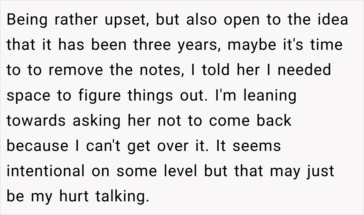 The Reddit community has offered a range of responses to this dilemma. Many users empathize with her need for time to process a loss that is as unique as the love she shared with her husband. They argue that the babysitter’s removal of the notes, regardless of her intent, felt like an intrusion into a sacred personal ritual—one that the author should have had the right to control.