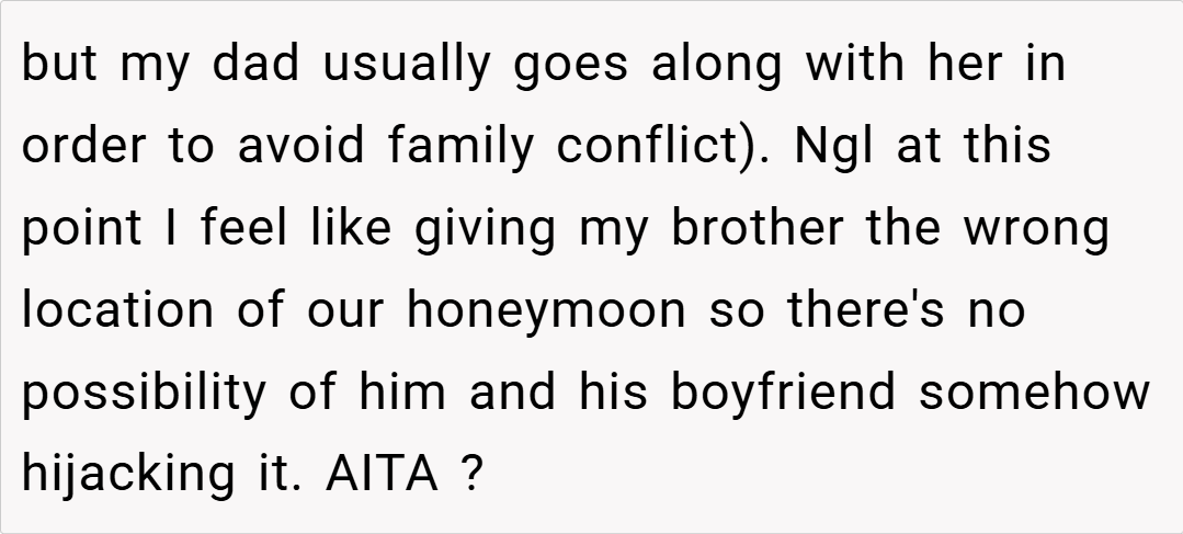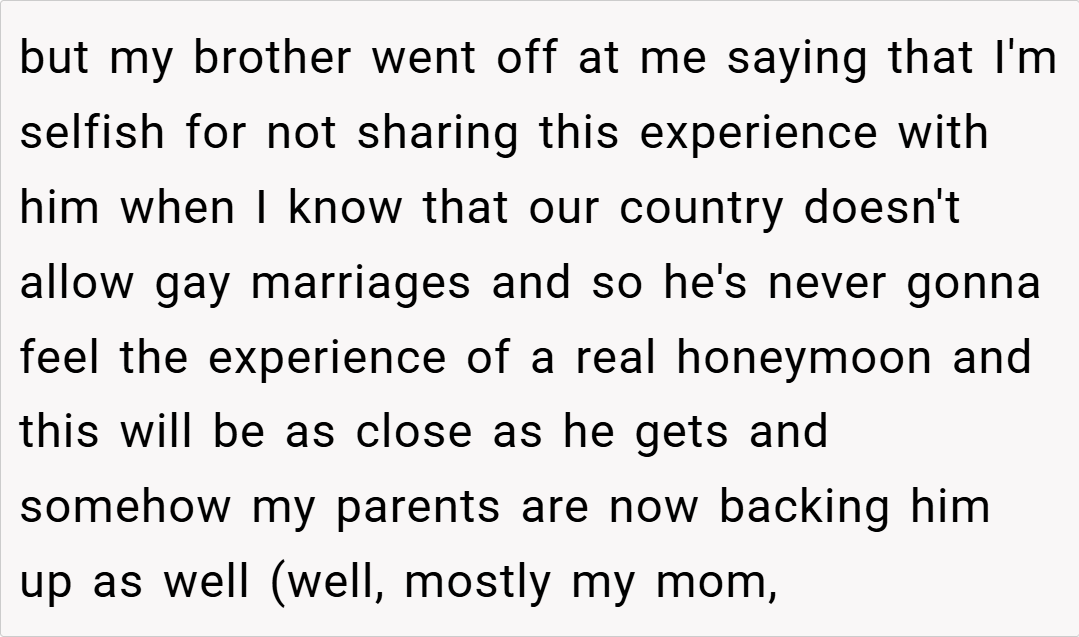 ‘AITA for not allowing my brother and his boyfriend to come to my honeymoon?’