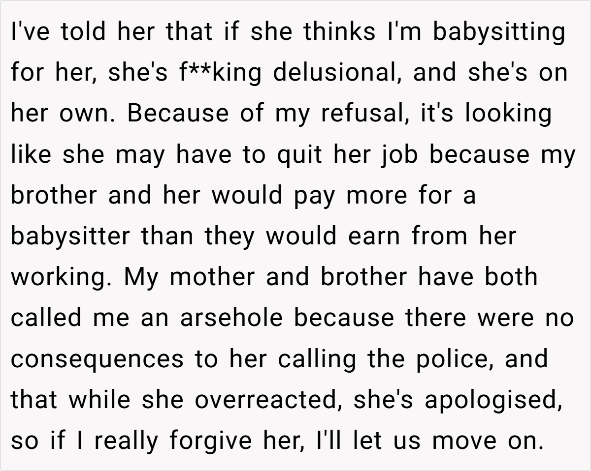 ‘ AITA for not babysitting for my sister in law any more after she called the police on me?’
