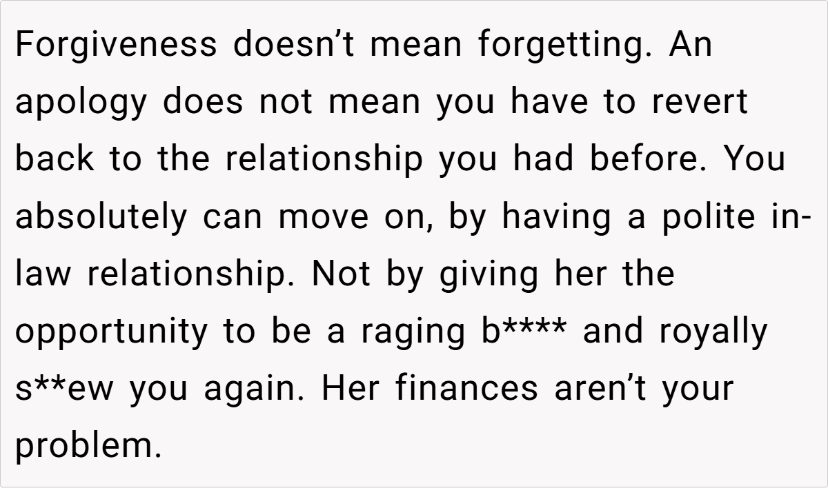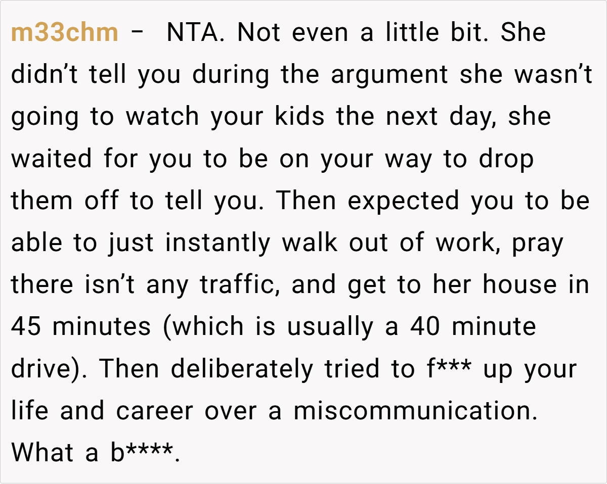 The OP’s decision to refuse future babysitting duties is a valid response to protect her own interests and those of her children. Dr. McCoy points out, “Setting boundaries is essential for maintaining mental well-being, especially when trust has been broken in such a significant way.”