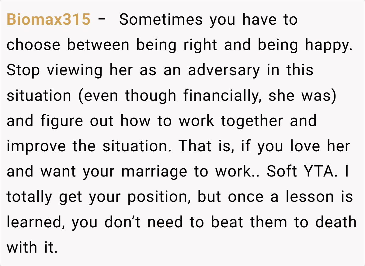 In the end, the delicate balance between personal responsibility and marital unity remains at the heart of this debate. While financial discipline is crucial, isolating a partner during tough times might only deepen the divide. What do you think—should financial missteps be met with tough love, or is there room for a more empathetic, collaborative approach? Share your thoughts and experiences below; your perspective might just help someone navigate a similar situation.