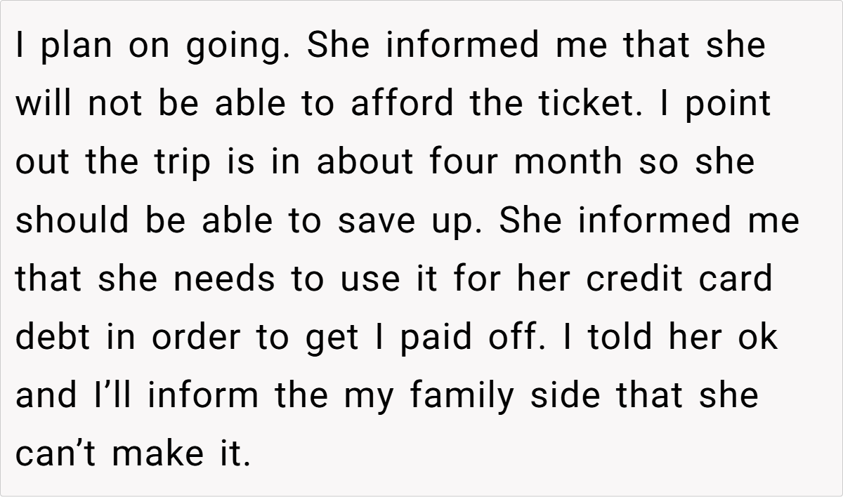 ‘AITA for not buying my wife a plane ticket so she is missing the family vacation?’