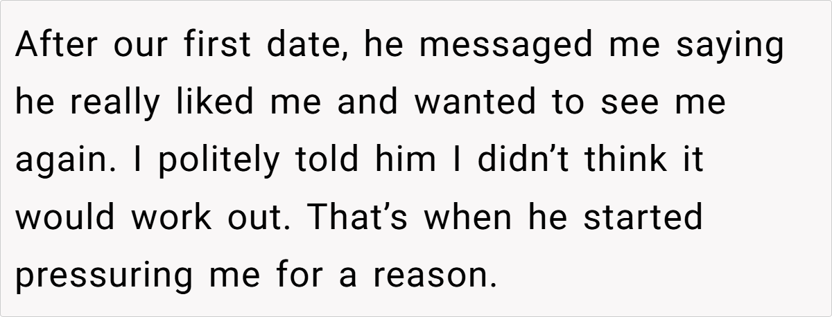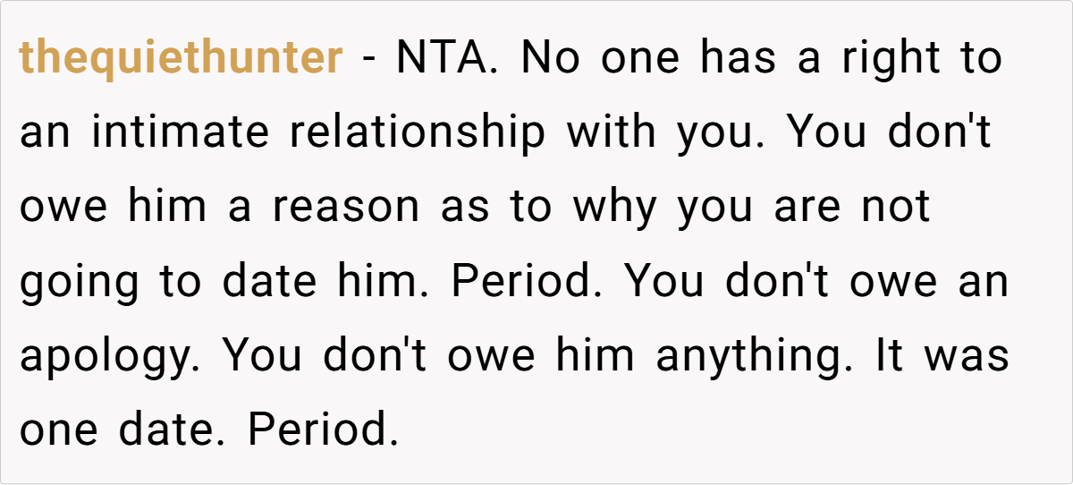 OP’s experience highlights a troubling trend where men refuse to accept rejection at face value. Instead of taking “no” as an answer, they demand a “valid” reason, hoping to pressure the person into changing their mind.