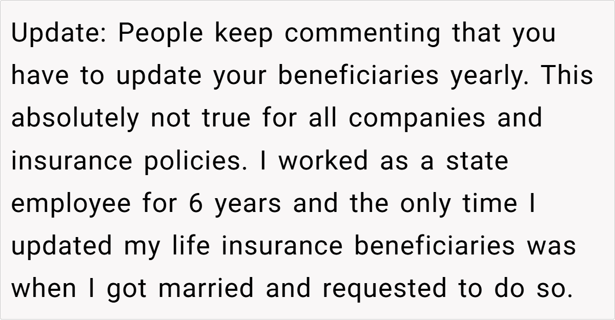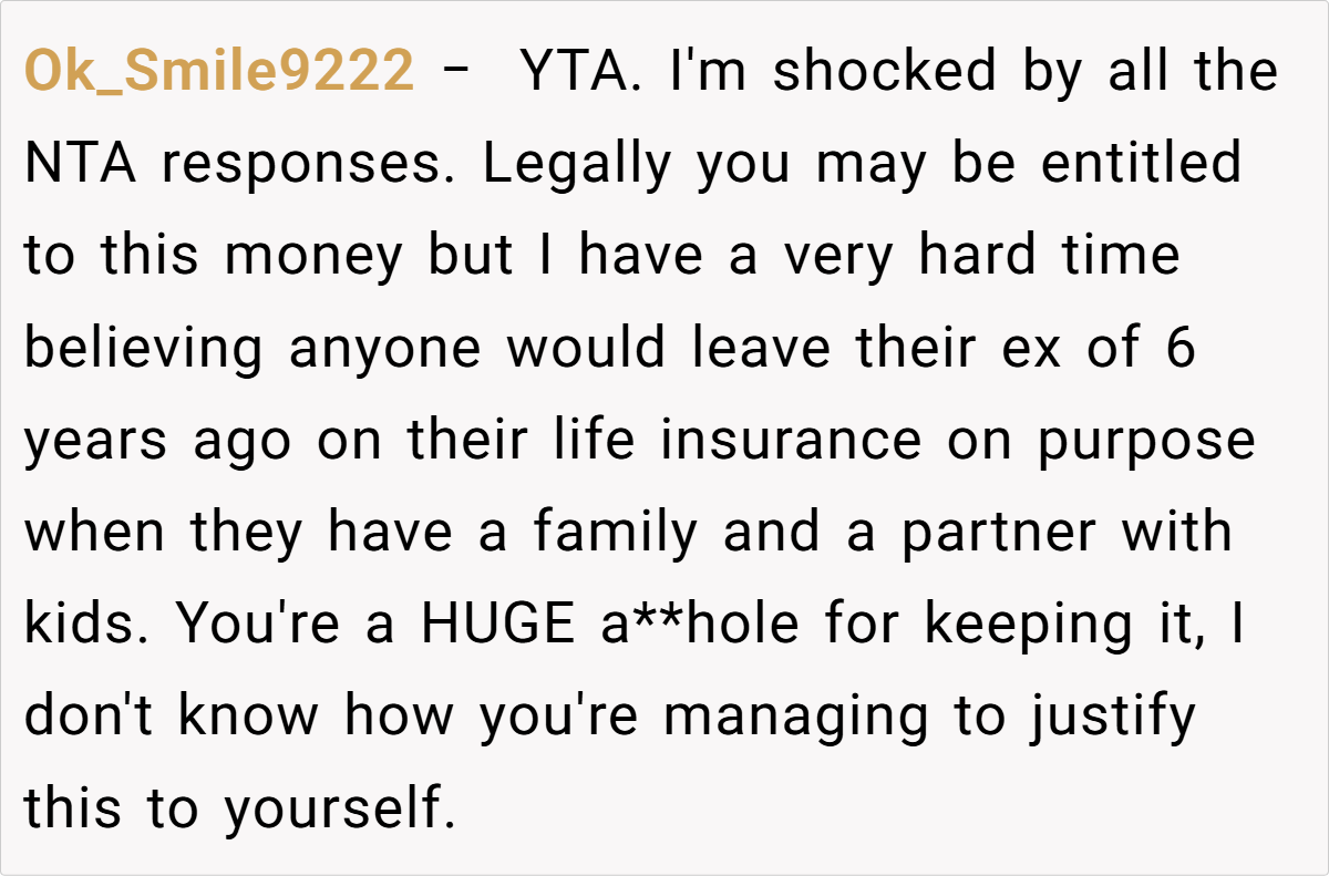 The fact that your ex had a new partner and children from a previous relationship adds layers to the moral debate. Many wonder whether he intended for his current family to benefit from his life insurance or if his oversight was simply a bureaucratic lapse.