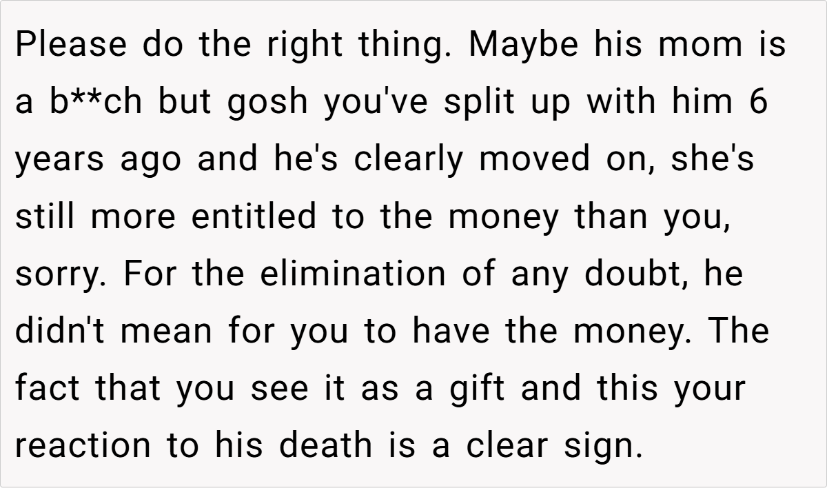 This story sits at the intersection of legal entitlement and moral responsibility—a place where the heart and the law might not always agree. While you are legally entitled to the money, the ethical questions remain: Was this truly your ex’s intended legacy, or just an oversight? And how will keeping it affect the relationships with his surviving family?
