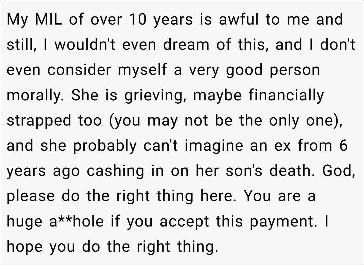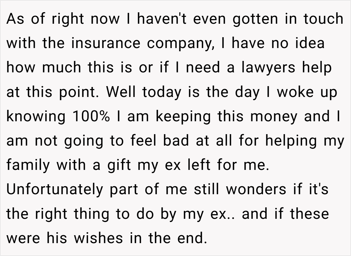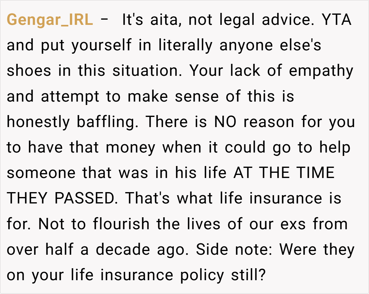 ‘AITA for not declining or signing over my portion of my ex bfs life insurance payout too his mom?