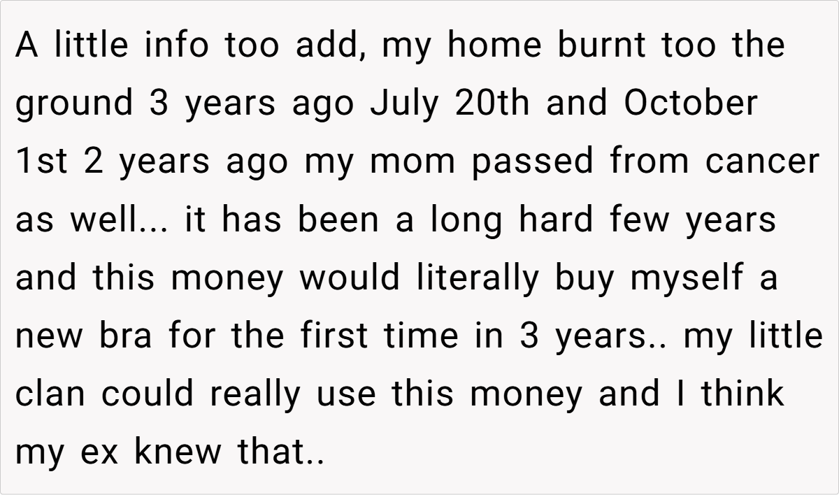 This situation is complicated by past relationships, family hardships, and the possibility that her ex may have simply neglected to update his policy. With her own life marked by significant losses—a home fire and the passing of her mother—this money represents more than just a windfall; it’s a potential lifeline for her family. But does legal entitlement justify keeping what might not have been intended for her?