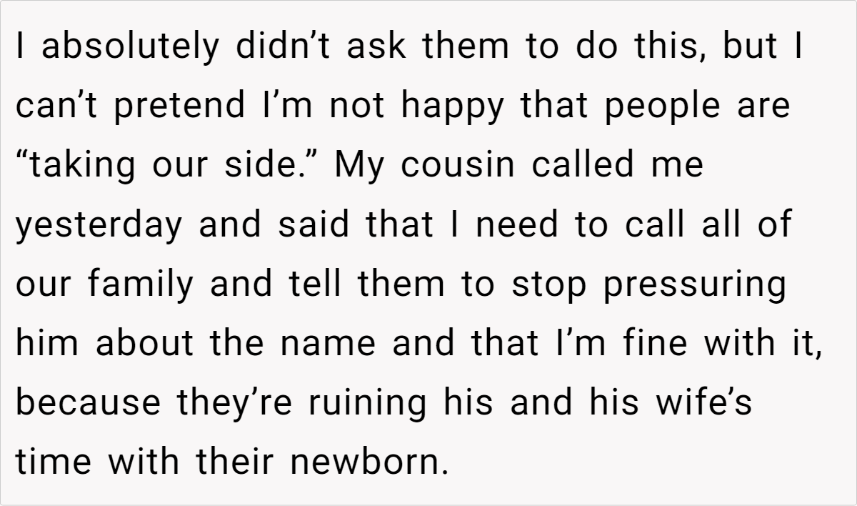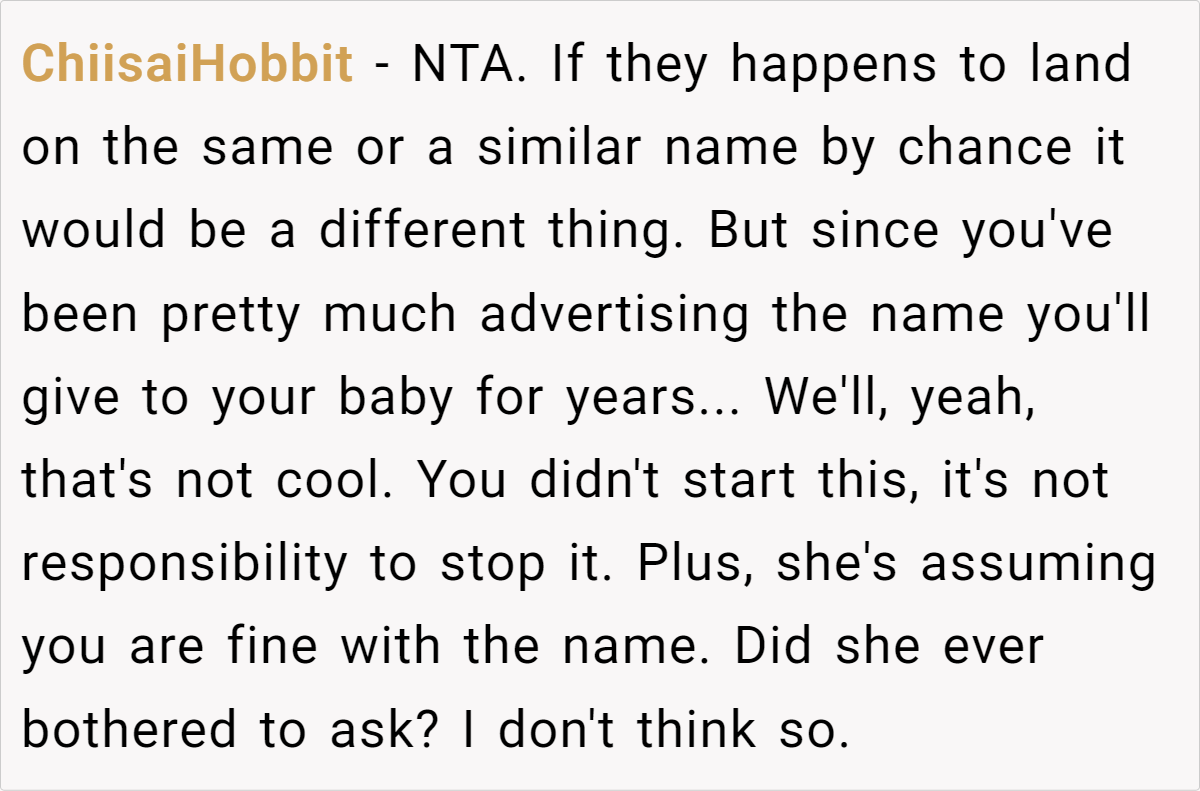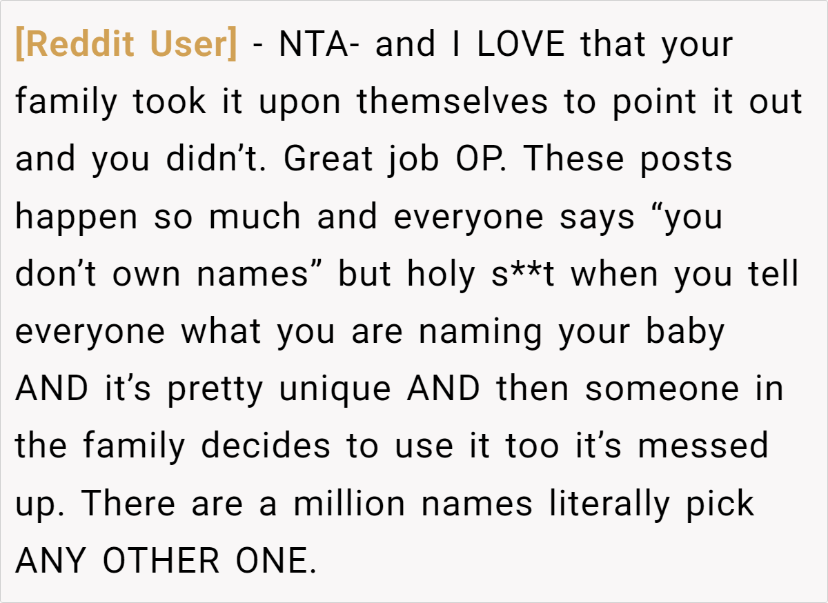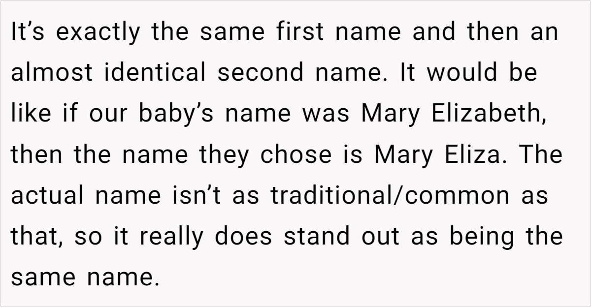In OP’s case, she had shared the name for years, embedding it into her family’s narrative. The cousin’s secrecy about their baby’s name choice suggests they knew the potential backlash but went ahead anyway, possibly underestimating the emotional weight the name held for OP.