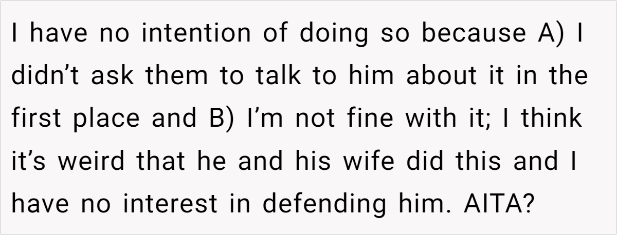 - Letting Actions Have Consequences – The cousin’s secrecy suggests they anticipated backlash. Instead of OP intervening, allowing them to navigate family responses on their own is a fair stance.