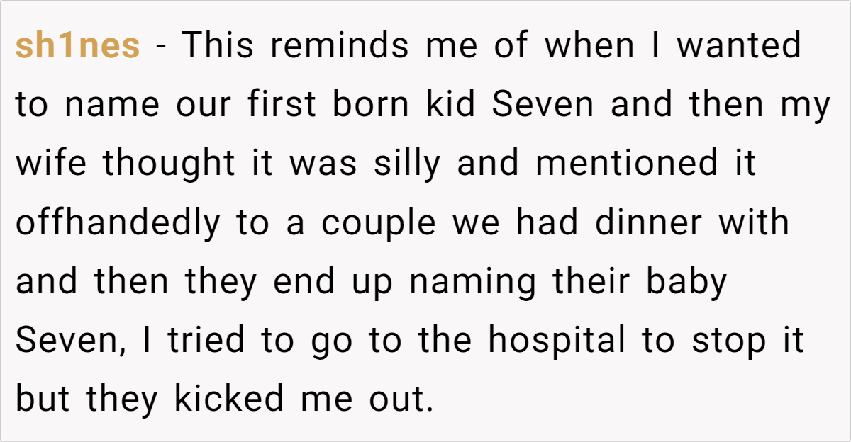 Naming disputes are more common than people realize. A 2022 survey by BabyCenter found that 11% of parents reported experiencing some form of “name stealing” from friends or family members.