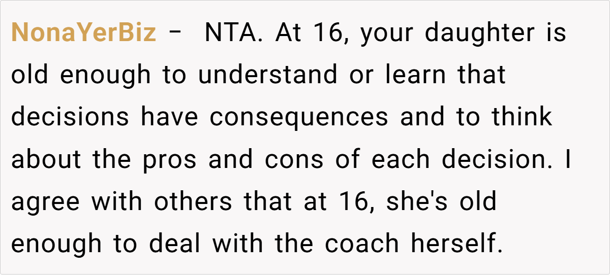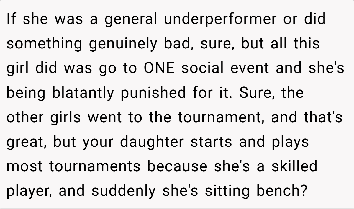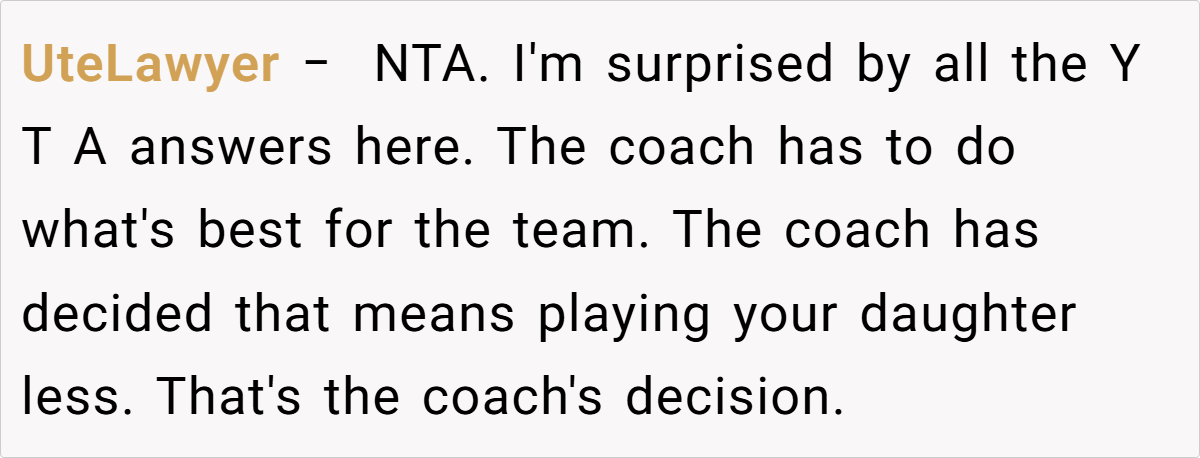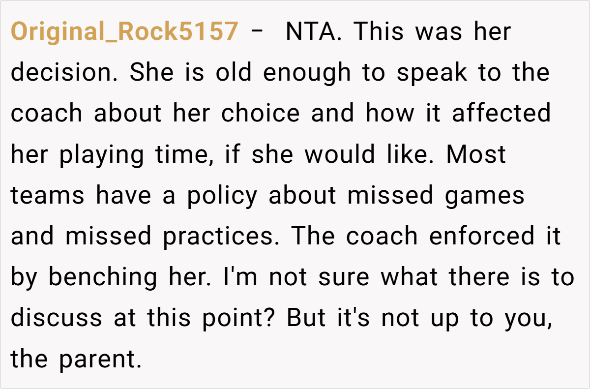 ‘AITA for not defending my daughter to her coach who almost benched her?’
