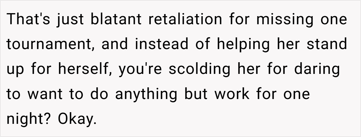 Some commenters applaud the parent’s strict stance as a necessary life lesson, while others condemn the lack of empathy for a teenager’s desire for normal social experiences. The range of opinions—from “blatant retaliation” to “natural consequences”—reflects the age-old debate between individual freedom and team obligation.