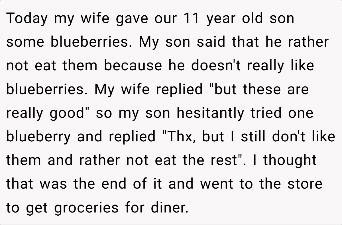 Family mealtimes can be a mix of fun, negotiation, and the occasional food fight. In one memorable evening, a seemingly simple decision about whether or not to eat blueberries turned into a full-blown parenting debate. An 11-year-old, clearly expressing his dislike for blueberries, found himself caught in a tug-of-war between gentle persuasion and forced eating. The incident not only sparked tears at the dinner table but also ignited a larger conversation about respecting a child’s tastes and bodily autonomy.