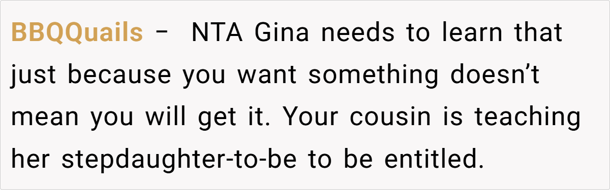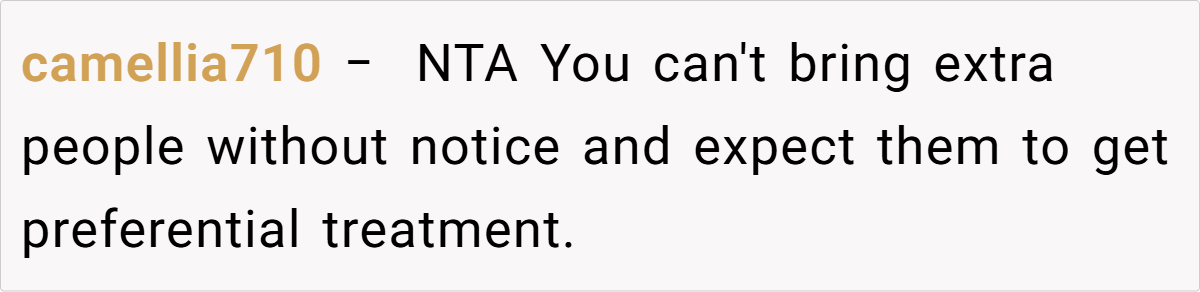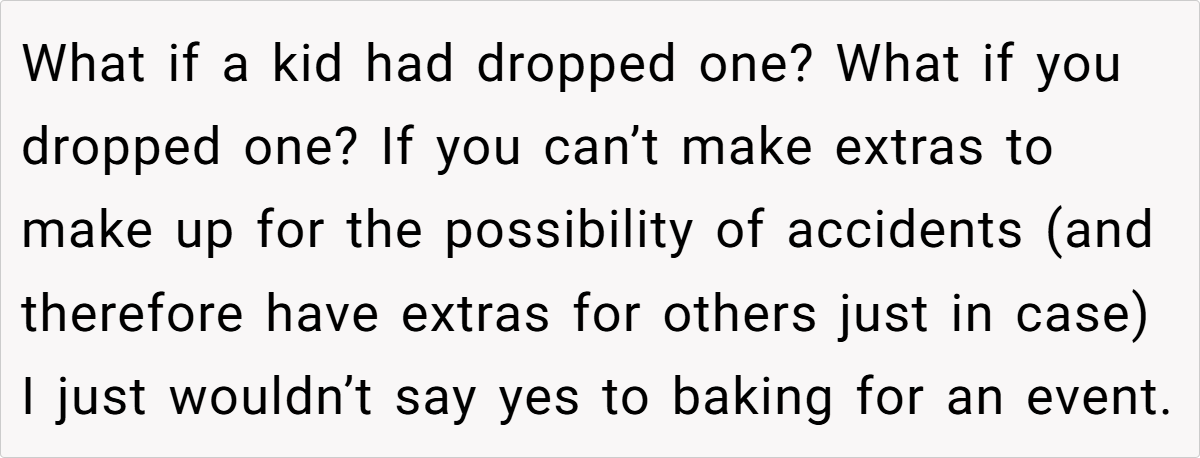 Some even argued that this was an important lesson for both children and adults about respecting pre-established plans and understanding that extra guests, though welcome, are not automatically entitled to the same special provisions. Others expressed sympathy for Gina’s disappointment while still agreeing that the baker was right to honor her original promise.