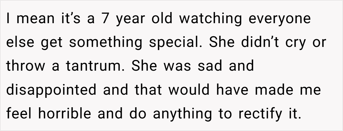 While it’s natural for a child like Gina to feel disappointed when left out, experts note that extra guests should be accommodated in other ways. In this instance, the baker offered a slice of the two-pound cake—a delicious alternative that still maintained her commitment to the original agreement.