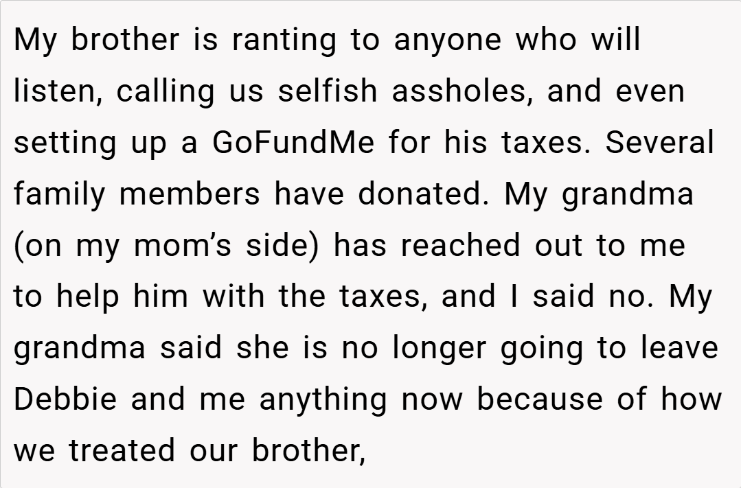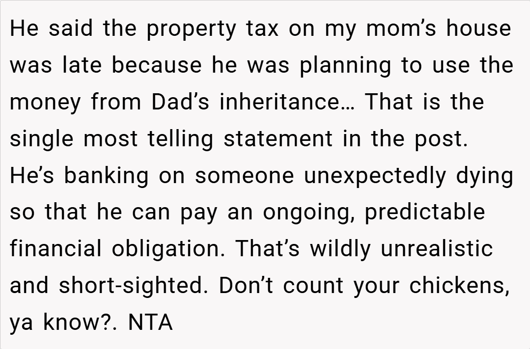 ‘AITA for not giving my brother a share of my inheritance for his property taxes?’
