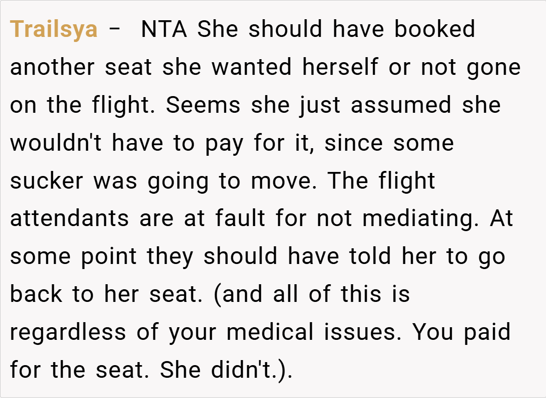 This clash of priorities underlines a broader debate: Should personal accommodations be subject to the immediate whims of others, or should they be protected as contractual rights once confirmed at booking? Beyond this specific encounter, the situation reflects a recurring challenge in modern air travel—where personal comfort, medical needs, and passenger etiquette collide.
