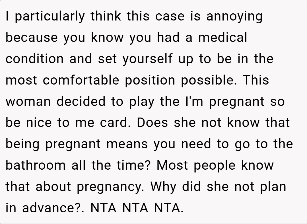 While the pregnant passenger’s need was understandable on the surface, the insistence to change a seat meticulously chosen for medical reasons led to a standoff with flight attendants, leaving the passenger questioning if fairness and proper channels were completely overlooked.