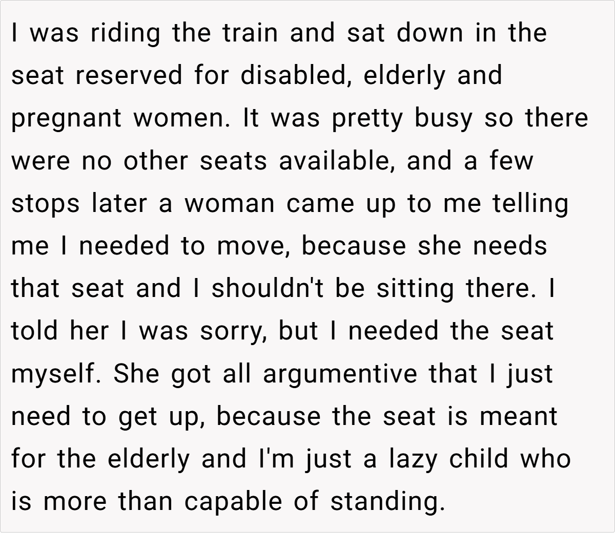 ‘AITA for not giving up my seat and embarrassing the woman who demanded my seat?’