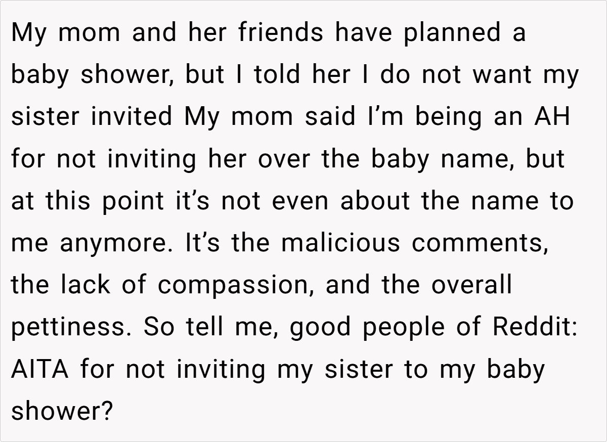 ‘AITA for not inviting my sister to my baby shower?’