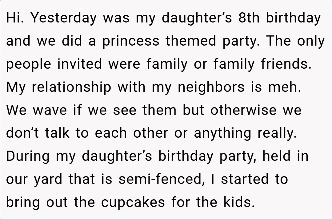 Every family has its own boundaries, and sometimes those lines are drawn very clearly—especially when it comes to private celebrations. Imagine planning a princess-themed birthday bash for your eight-year-old daughter in your own backyard, only to find uninvited guests wandering in.