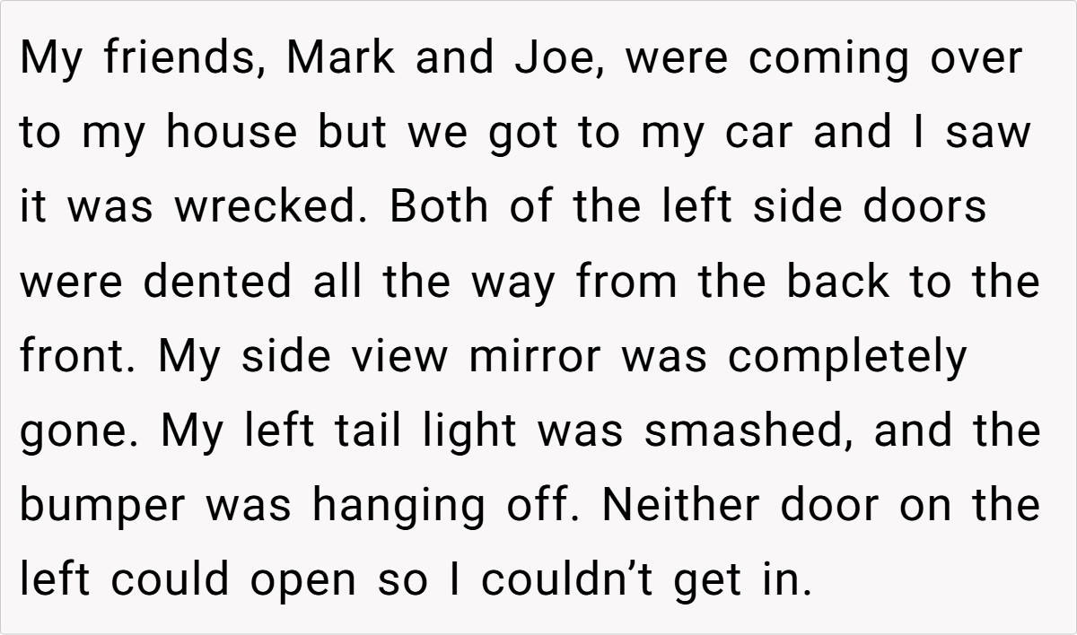 Getting your car totaled is bad enough, but dealing with the aftermath can be even tougher—especially when it involves someone you barely know. In this update, a 17-year-old recounts how his car was vandalized and the events that followed.