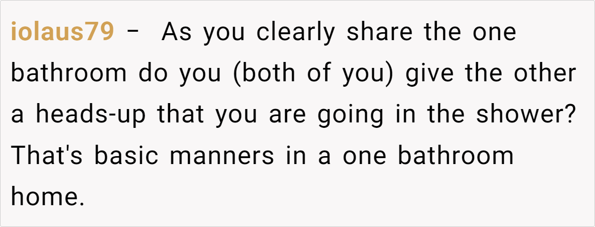 Dr. Jamie Edwards, a well-known relationship counselor, highlights, “When people dismiss seemingly trivial daily stressors, they miss valuable opportunities to practice empathy and constructive dialogue.” This rings true here: if a couple can’t find a healthy approach to bathroom sharing, it may reveal underlying friction about respect and mutual courtesy.