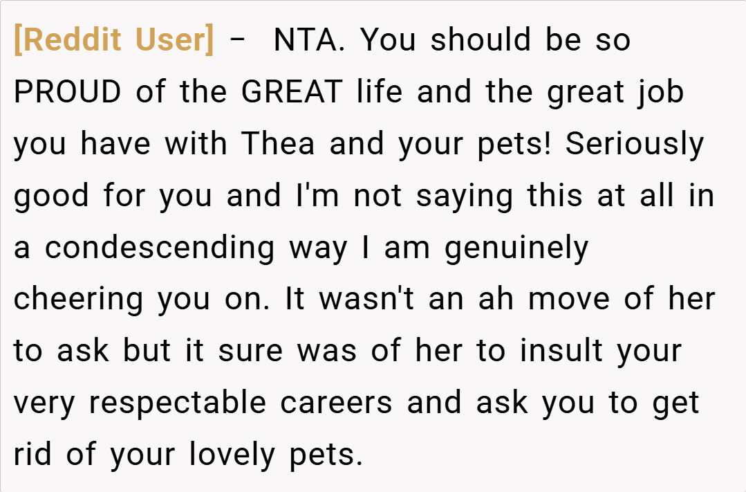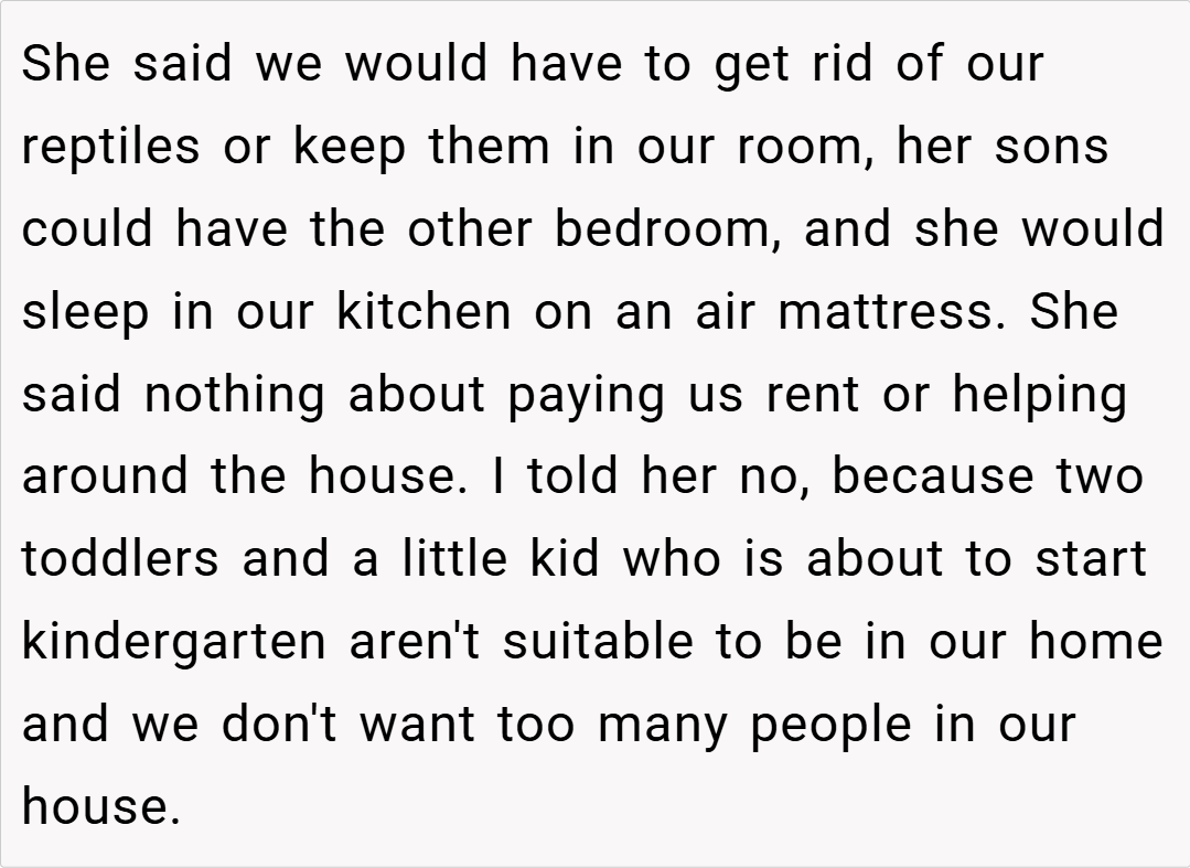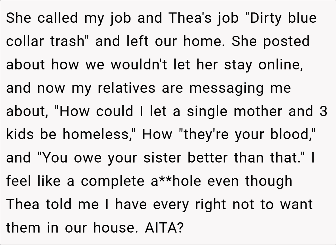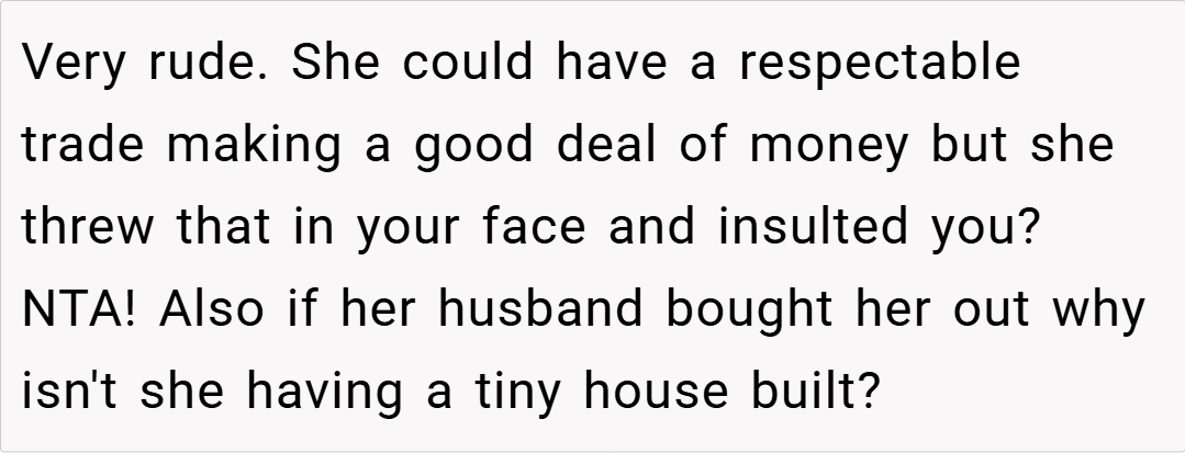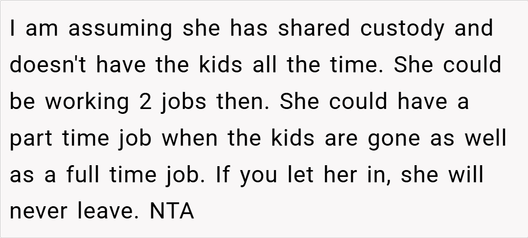 Ultimately, the decision to decline the request isn’t made out of cruelty but out of a necessity to protect a personal haven—one where success, peace, and the freedom to live life on one’s own terms are paramount. By setting such boundaries, the narrator is not denying family love; she is simply insisting that every member must take responsibility for their own path, ensuring that her hard-fought progress remains intact.