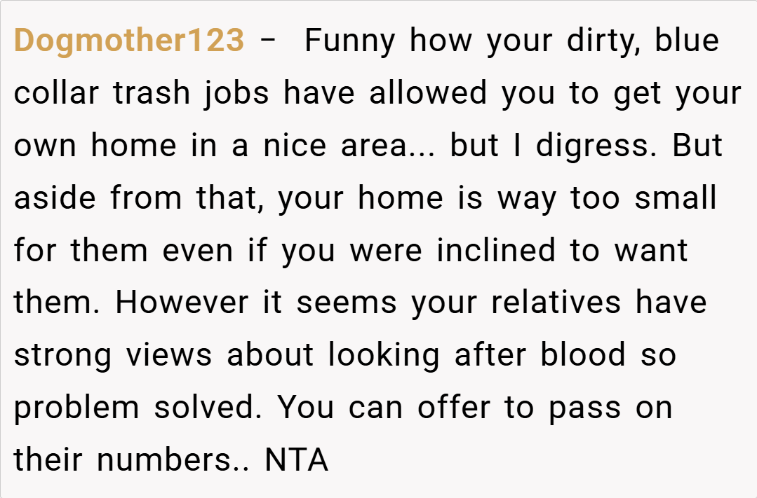 Deciding who to welcome into one’s home is never just about space—it’s about preserving the sanctity of the life you’ve built. In this scenario, the narrator explains that her home, though filled with dreams, was never intended to be a safety net for extended family members. The balance between familial loyalty and personal freedom is delicate, and sometimes tough choices must be made to protect one’s hard-earned independence.
