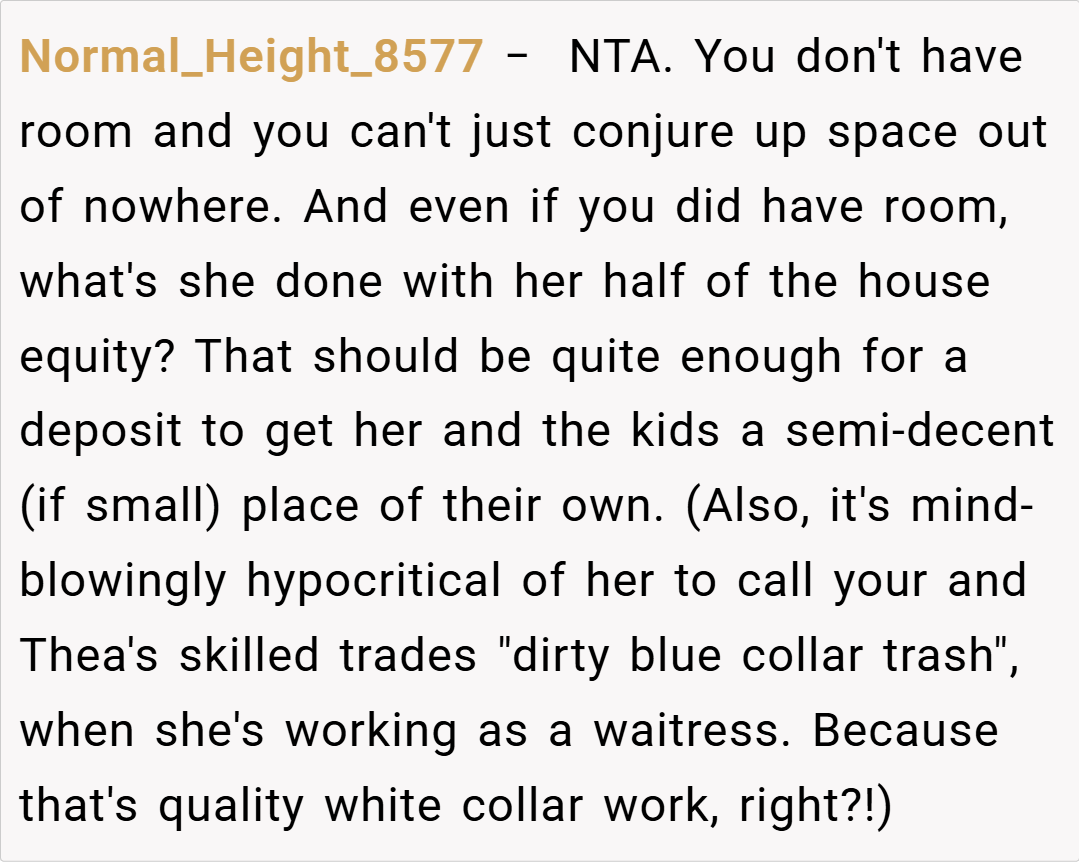 Many redditors sympathize with the narrator’s desire to safeguard her new life, arguing that no one should be forced to compromise their dreams for others. Others, however, feel that family should always come first, regardless of circumstances. The debate is as charged as it is insightful, capturing the nuanced balance between personal freedom and familial obligation