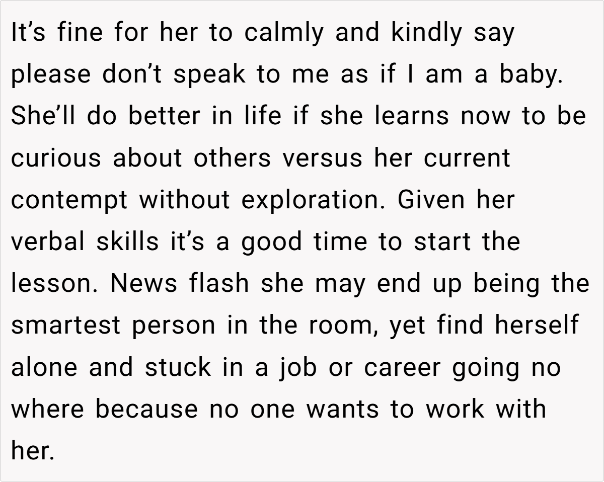 Broadening the discussion, this scenario reflects larger social dynamics regarding respect, authority, and generational differences in communication styles. Often, well-intentioned actions—like using baby talk—can be misinterpreted by a child who is already developing a mature sense of self. It prompts us to consider that the art of parenting involves a constant adjustment of our approaches, ensuring that our attempts at warmth do not inadvertently stifle a child’s individuality.