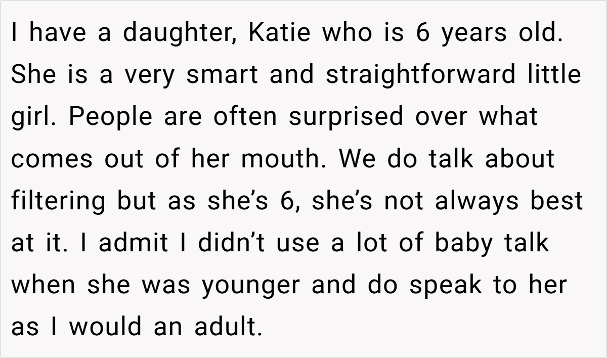 In the heart of a bustling household, one unexpected moment can turn a simple interaction into a memorable lesson in communication. Recently, a father recounted an incident involving his bright and straightforward 6-year-old daughter, Katie. Known for her candid remarks and mature outlook, Katie was taken aback when Julie—her babysitter’s well-meaning mother—switched to an overly cutesy tone. The affectionate baby talk, intended to express warmth, instead set the stage for a humorous clash of expectations.