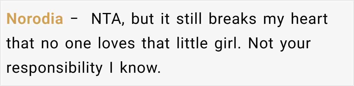 Most Reddit commenters do not fault the OP for refusing to take the youngest stepsister to the party, emphasizing that the father and stepmother bear the primary responsibility for care and family bonding. Some commenters express sympathy for the little girl, pointing out that she is at a disadvantage and appears unloved, while her older stepsisters completely refused to help.