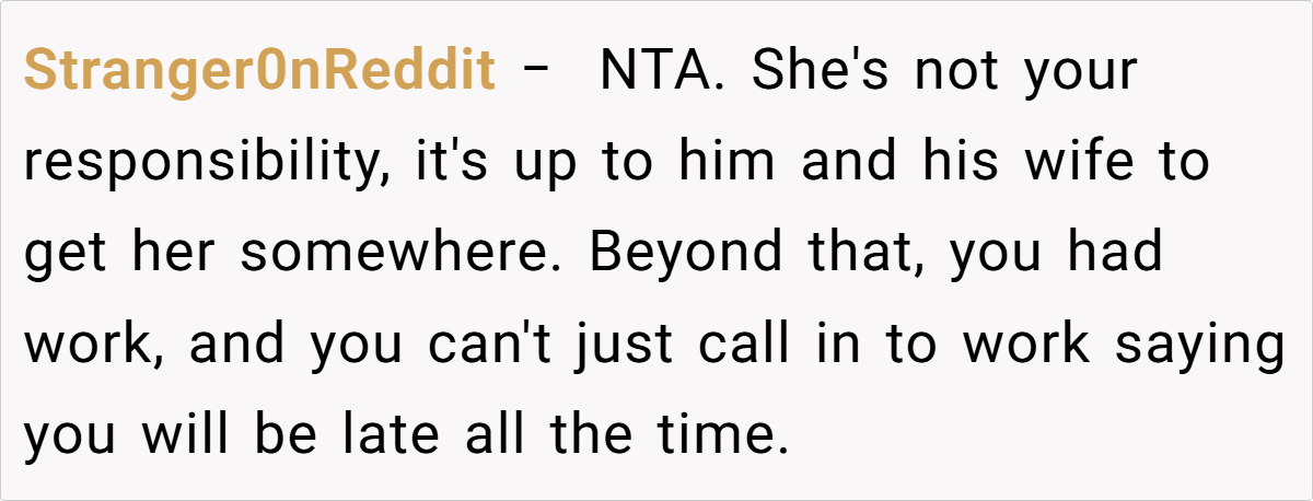 His decision not to adjust his schedule for her has led to tension with his father, who feels he should have taken on more responsibility. This situation highlights the intricate relationships within blended families and the expectations placed on family members to support one another.