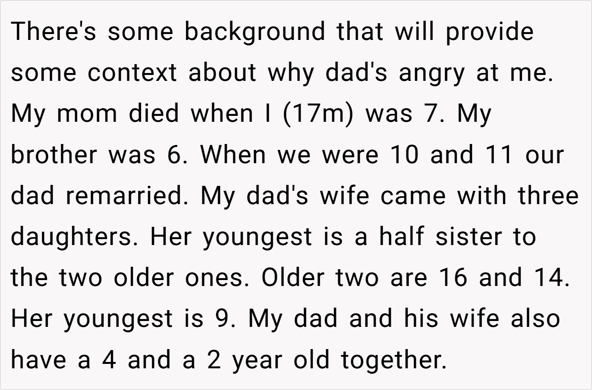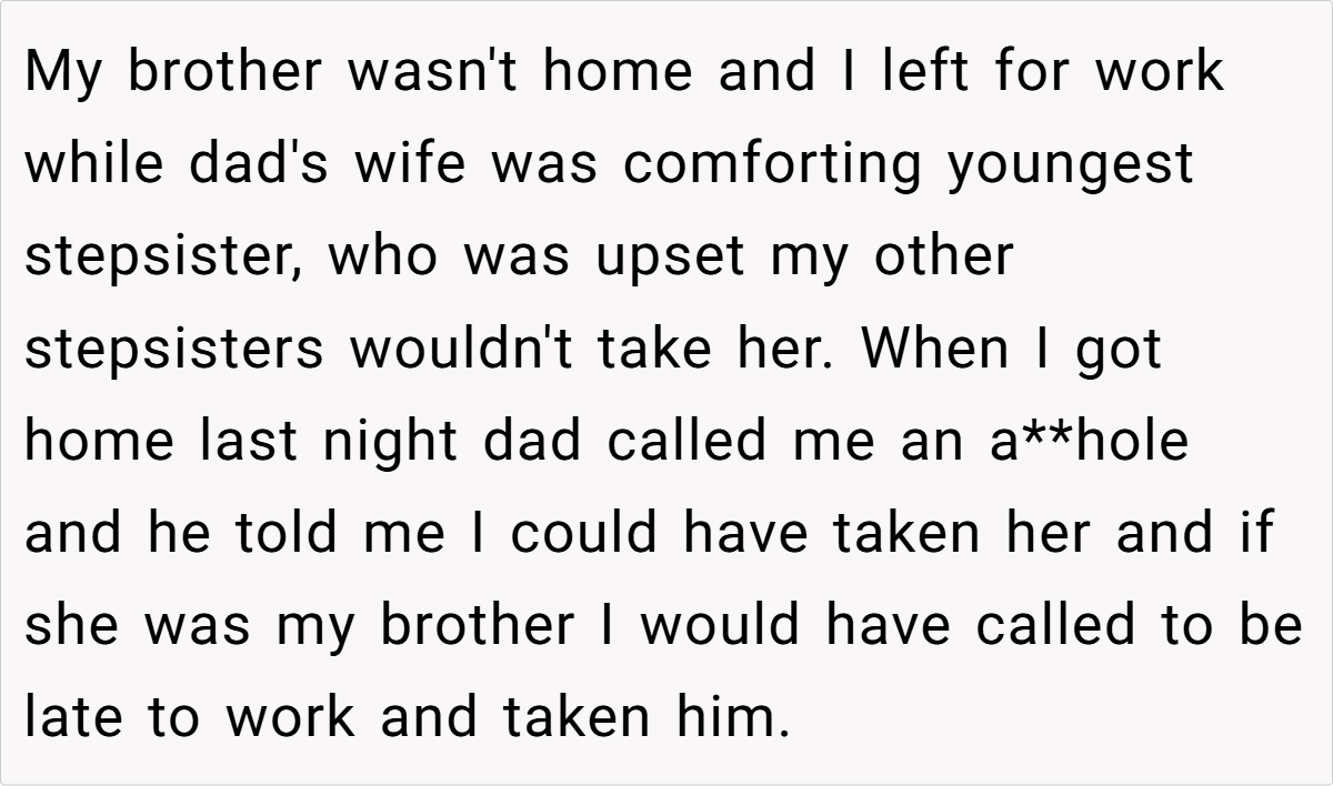 Navigating the complexities of blended families can be challenging, especially when it involves multiple siblings with different backgrounds and emotional dynamics. One young man found himself at the center of a family conflict when his youngest stepsister needed a ride to a party, but her older sisters refused to help.