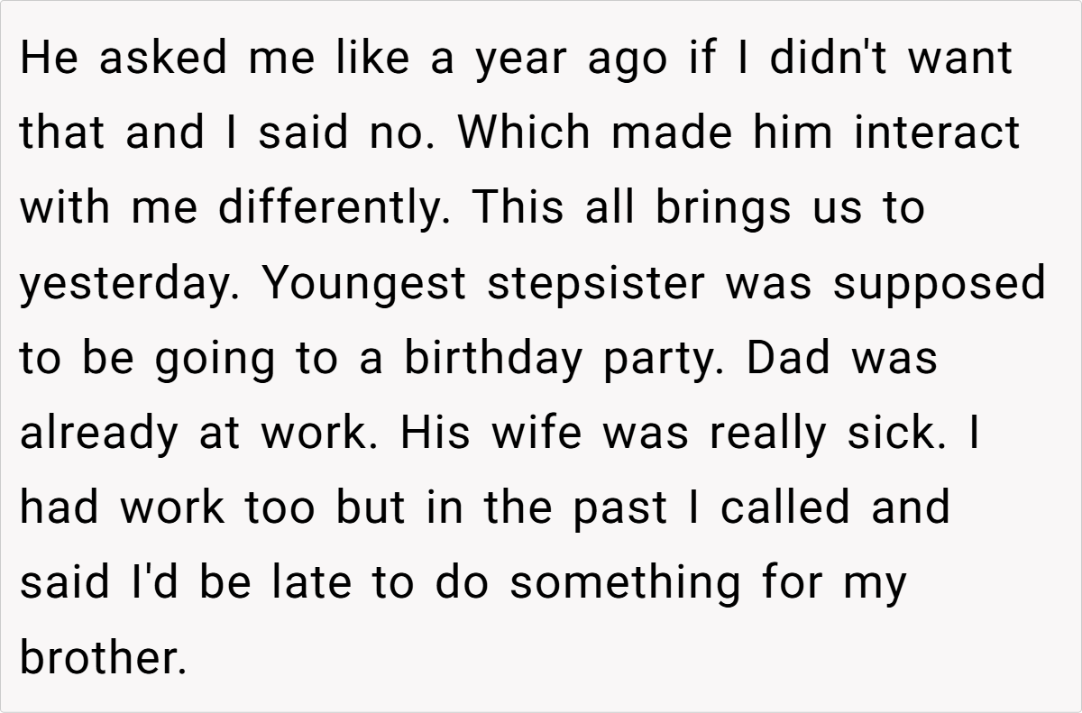 ‘AITA for not making my schedule work so my youngest stepsister could go to a party?’