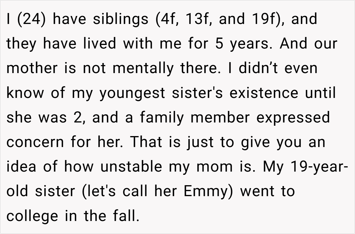 In a world where family obligations often blur the lines between care and sacrifice, one young woman’s story stands out. Balancing financial responsibilities and sibling support, she’s been the unsung hero for her younger siblings, juggling work and endless expenses. Amidst the chaos of managing a household and covering tuition fees, emotions ran high when her 19-year-old sister’s expectations clashed with harsh financial realities. The tension is palpable, evoking both empathy and a touch of incredulity at the cost of trying to hold everything together.
