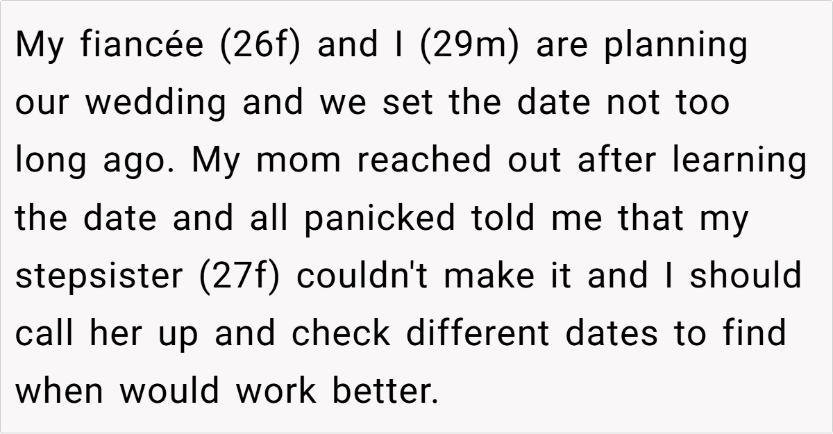 ‘AITA for not planning my wedding around my stepsister’s busy schedule?’