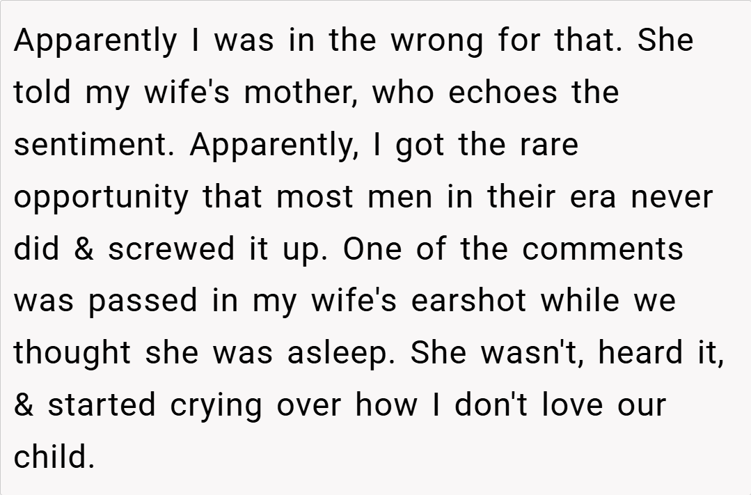 Though the baby was later confirmed to be healthy, his focus was entirely on his wife—who was fighting for her life during what was supposed to be a joyous occasion. His mother later questioned him about the baby’s appearance, sparking a storm of criticism from family members and even his wife, who overheard disparaging remarks. This situation has left him questioning if he truly failed in his duty as a father.