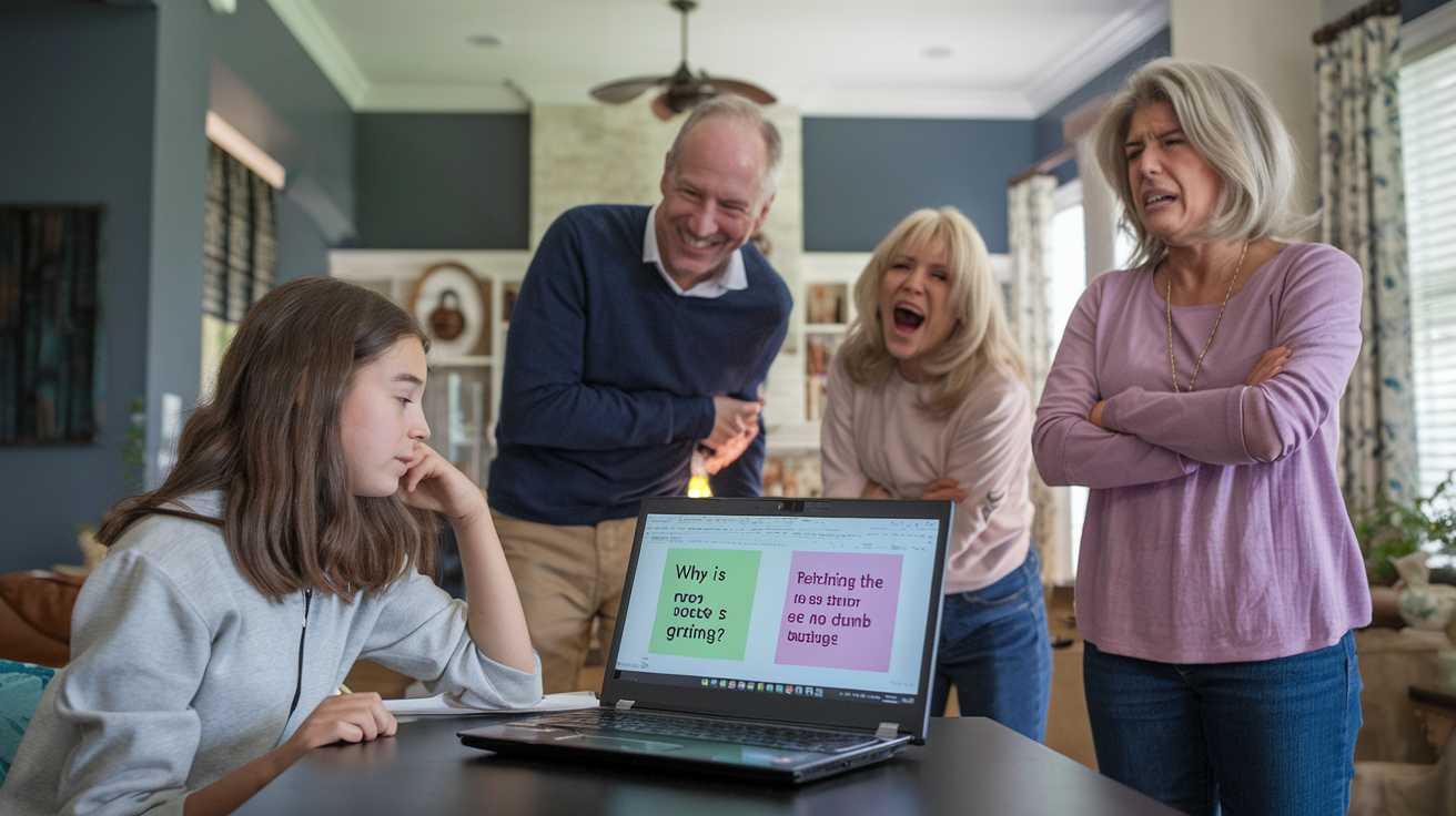 My daughter rejected to request, and my wife told her: “Unless you have a valid reason for disliking your cousin, you will do this because we’re family”. The call occurred. This morning, we awoke to a PowerPoint presentation titled *Valid Reasons to Dislike \[Cousin\].* Using clips from the zoom call, segments included *Why is \[Cousin’s\] Voice so Grating?