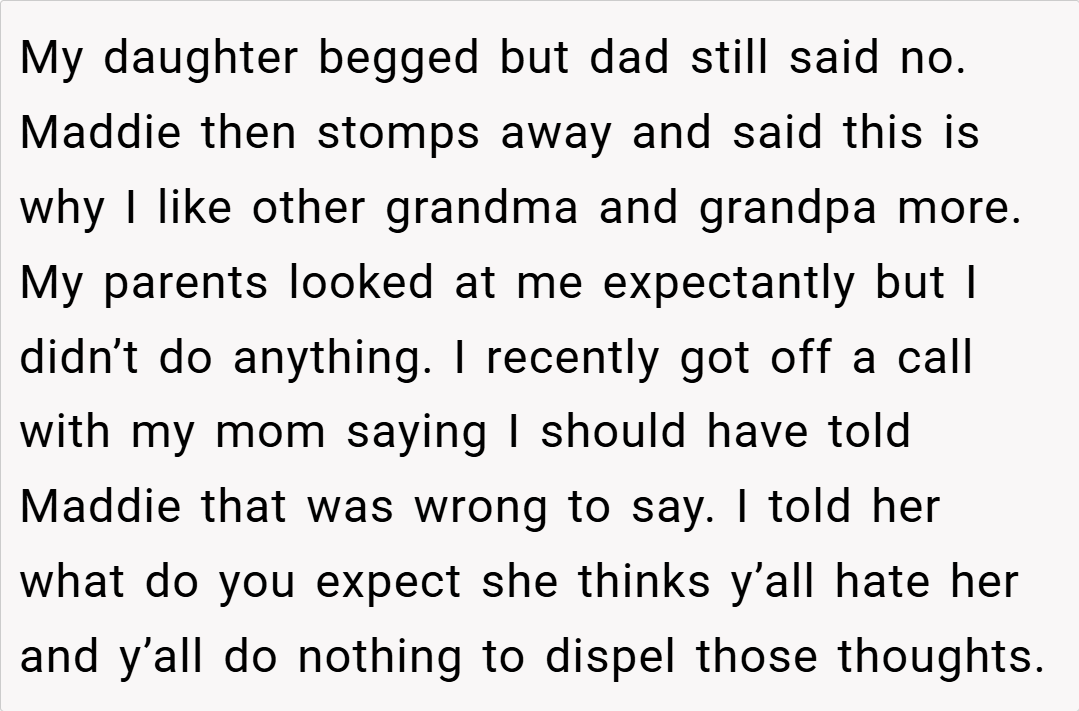 Her hurtful response, “this is why I like other grandma and grandpa more,” echoed through the room. Instead of chastising her, her parent chose to sit quietly, a decision that sparked debate later over whether such remarks should be disciplined. Was it a moment of honest expression born from feeling unloved, or did it cross the line into disrespect? Let’s explore this complex family drama together.